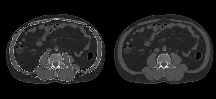 内臓脂肪・皮下脂肪領域の抽出と筋肉量計測